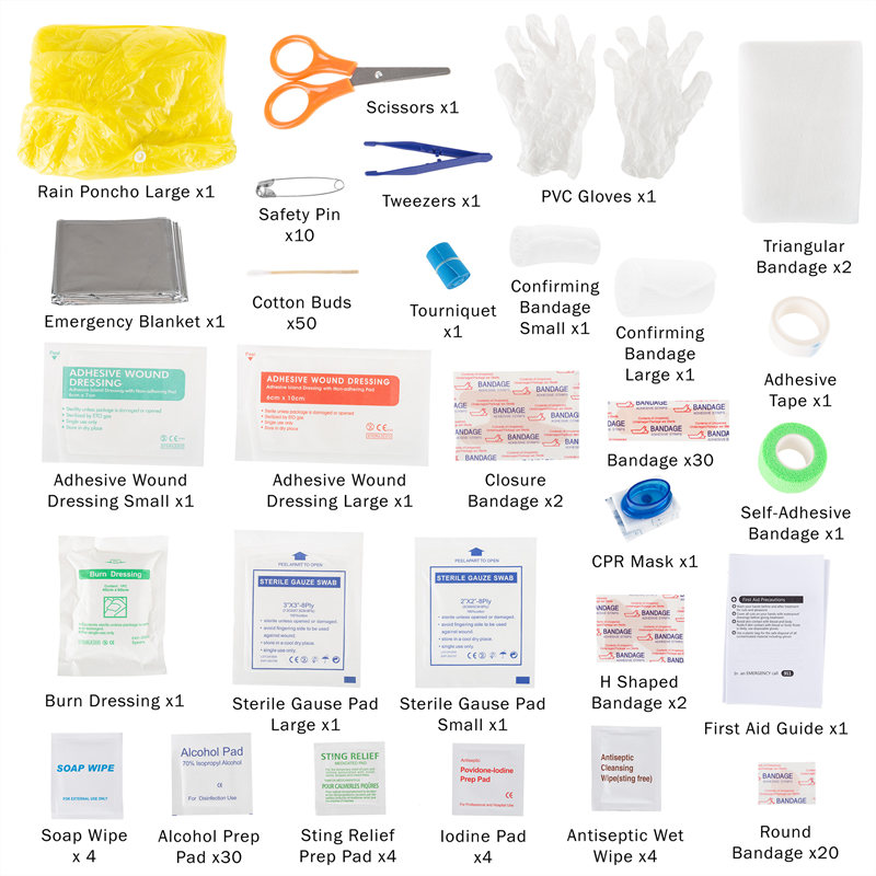 kit de primeiros socorros médicos é absolutamente essencial para sua casa ou segurança do escritório. este conjunto vem totalmente equipado com tudo o que você precisa estar preparado em caso de emergência ou tratar uma lesão tão simples quanto joelho raspado. com um prático estojo zip up incluído para guardar e guardar todas as suprimentos médicos, este kit é ideal para viagens e é perfeito para casa, carro ou escritório. este kit compacto é essencial para qualquer bolsa de sobrevivência ou situação de emergência.
